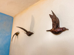 La habitación conocida como Canta Corazón tiene un tamaño 21.00 mts2, está pensada para 2 personas, pero tiene una cama escondida en donde se puede acomodar a un par de invitados más. Esta habitación se encuentra en la planta alta, los colores que predominan son los tonos azules y como es típico siempre encontrarás adornos con aves.